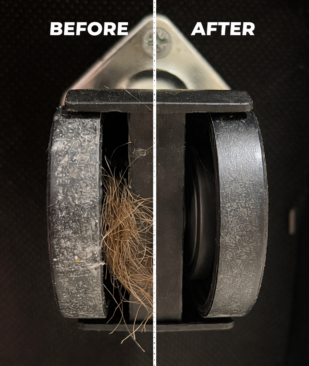 Brush away any remaining debris for a smooth, clean finish. Once cleared, simply snap the wheel back into place.